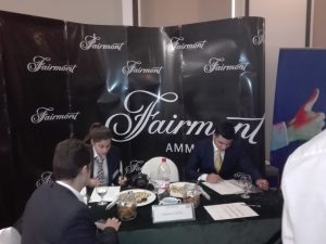 عالم السياحة- نظمت كلية عمون الجامعية اليوم الوظيفي برعاية دولة رئيس الوزراء والذي انتدب عنه معالي وزيرة السياحة لينا عناب لافتتاح اليوم الوظيفي السنوي وذلك يوم الابعاء الموافق 11/7/2018 في فندق سينشري بارك عمان ، وافتتحت وزيرة السياحة معالي السيدة لينا عناب فعاليات اليوم الوظيفي في قاعة (قاعة راما) والذي يلتقي فيه قطاع الضيافة (فنادق ومطاعم ) مع خريجي الكلية لايجاد فرص عمل لهم في القطاع السياحي عموما وقطاع الفنادق والمطاعم بشكل خاص ، وجاء النشاط تحت شعار (من عمون شغلك مضمون)