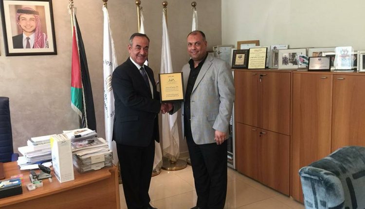 رئیس مجلس إدارة جمعیة_الفنادق لأردنیة عبد الحكیم محمود الھندي يكرم رئيس نقابة الخدمات العامة