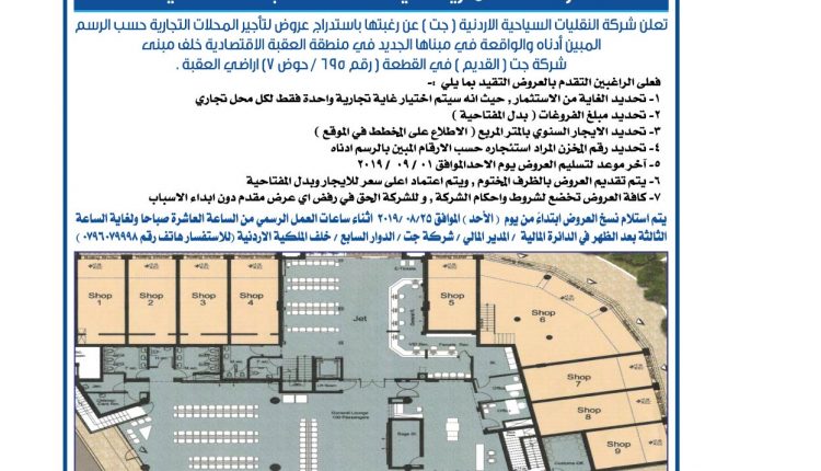 اعلانات في الاخبار-Ads in the newsاعلانات-واخبار-قصيرة-Ads-and-short news شركة النقليات السياحية-جت- تفتح فرص استثمارية في منطقة العقبة الاقتصادية -اعلان استدراج عروض تأجير في مبنى الشركة اخر تحديث أغسطس 25, 2019 4٬649 مشاركة شركة النقليات السياحية-جت- تفتح فرص استثمارية في منطقة العقبة الاقتصادية -اعلان استدراج عروض تأجير في مبنى الشركة 4٬649 مشاركة