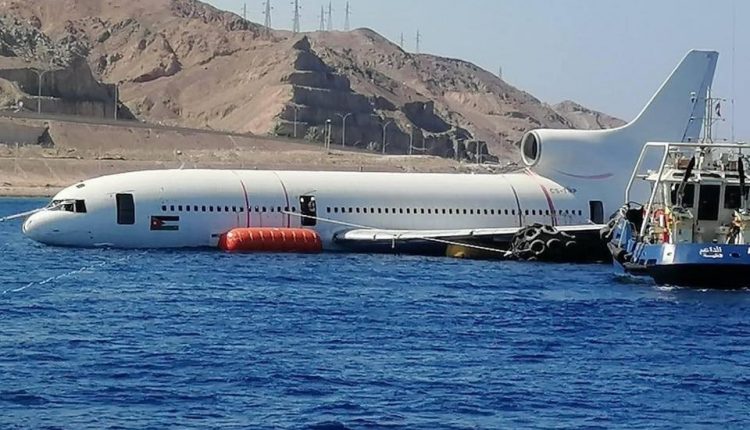 سلطة العقبة الاقتصادية تغرق طائرة ضخمةبهدف اثراء بيئة الغوص وتنمية سياحتها في العقبة