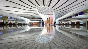 ويقع مطار بكين داشينغ الدولي على بعد 46 كلم جنوب ساحة “تيان انمين”، وسيعمل المطار بكامل طاقته في العام 2040 مع ثمانية مدرجات وقدرة على استقبال 100 مليون مسافر في العام.