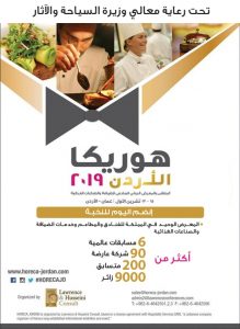 برعاية وزير السياحة والأثار تنطلق غدا -اعمال الملتقى والمعرض الدولي السادس للضيافة والصناعات الغذائية والتجهيزات الفندقية “هوريكا الأردن 2019” في الدوره السادسه – معرض عمان الدولي للسيارات في الفترة الواقعة 13-15 الجاري
