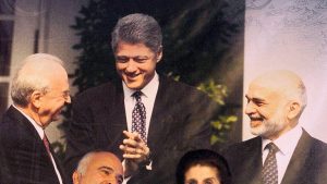 وأشارت الوزارة، إلى أن “حفل توقيع الوثيقة، تم في وادي عربة شمالي العقبة وإيلات في يوم 26 أكتوبر 1994 بحضور الملك الحسين بن طلال ورئيس وزراء إسرائيل يتسحاق رابين والرئيس الأمريكي بيل كلينتون”.