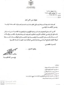 قرر وزير الداخلية الاردني سلامة حماد الموافقة والسماح لمجموعات السياح الكولمبيين والنيجريين عبر اسرائيل بالدخول للمملكة بهدف وغاية تنشيط السياحة ،ودون الحاجة للموافقات المسبقة ومن خلال مكاتب وشركات وكلاء السياحة والسفر المرخصين قانونيا ، وجاء هذا القرار بكتاب موجه نسخ منه – لرئاسة الوزراء -وزارة السياحة والاثار -وزارة الخارجية والجهات الامنية المعنية لتنفيذه والعمل بمقتضاه وفي ما يلي صورة نص كتاب الموافقة: