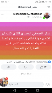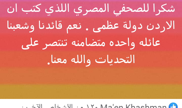 الأخبارصيدنا :من فيسبوك-واتساب-تويتر صيدنا: الكابتن محمد الخشمان يشكر صحفي مصري وصف الاردن بالدوله العظمى في مارس 19, 2020 859 مشاركة عالم السياحة:صيدنا فيسبوك وجه الكابتن محمد الخشمان الشكر لصحفي مصري وصف الاردن بالدولة العظمى وذلك في تغريدة على صفحته فيسبوك 859 مشاركة