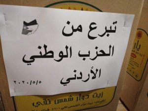 بعدد من الطرود للحزب فرع إربد وبادرت قيادة الحزب بالتنسيق وتوجيه الثناء والشكر لمن اسهموا بتعزيز روح وواجب التكافل والتضامن وذلك للوقوف مع ابناء الوطن في هذه الجائحة التي اصابت البشرية جمعاء .