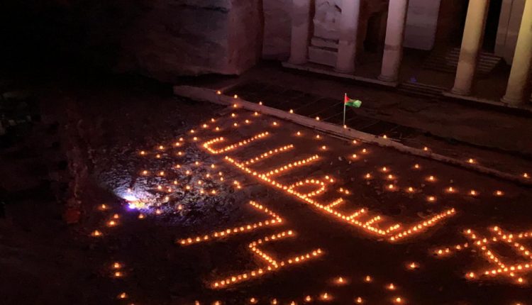 إضاءة شموع بمناسبة عيد الاستقلال 74 أمام معلم الخزنة الصخري في مدينة البترا الأثرية- (المملكة)