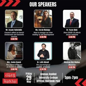 اعلنت كلية عمون الجامعية عن فعالية تحت عنوان (وعيك بيحمينا 2 )على منصتها وصفحتها الرسمية فيسبوك في جلسة حوارية مساء يوم الجمعة