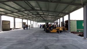 وسلمت وزارة الأشغال الساحة للأجهزة المعنية للبدء بتشغيلها بعد أن خضعت لأعمال تسوية وطبقات الفرشيات والخلطات الإسفلتية بما يتناسب مع الحمولات الثقيلة للشاحنات وأعمال “رمبة” خرسانية ومظلتين للمناولة، بالإضافة إلى المكاتب الإدارية والخدمات الصحية واللوجستية.
