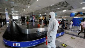 واستقبل المطار الرحلة الأولى بالورود، في مشهد احتفالي بعودة السياحة، وبدء العودة التدريجية للحياة، وسط إجراءات احترازية مشددة، وإجراءات طبية وكشف على القادمين، وتعقيم للحقائب، للوقاية من فيروس كورونا.