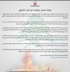 التحالف الوطني الاردني(جوناف) يقدم التعازي ويعلن تضامنه مع الشعب اللبناني الشقيق -صورة البيان