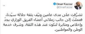 “تشرفت على مدى عامين ونيف بثقة جلالة سيدنا ،فعملت الى جانب الفريق الوزاري بجد واخلاص ومثابرة لنكون عند هذه الثقة ،وشرف خدمة الوطن والمواطنين”