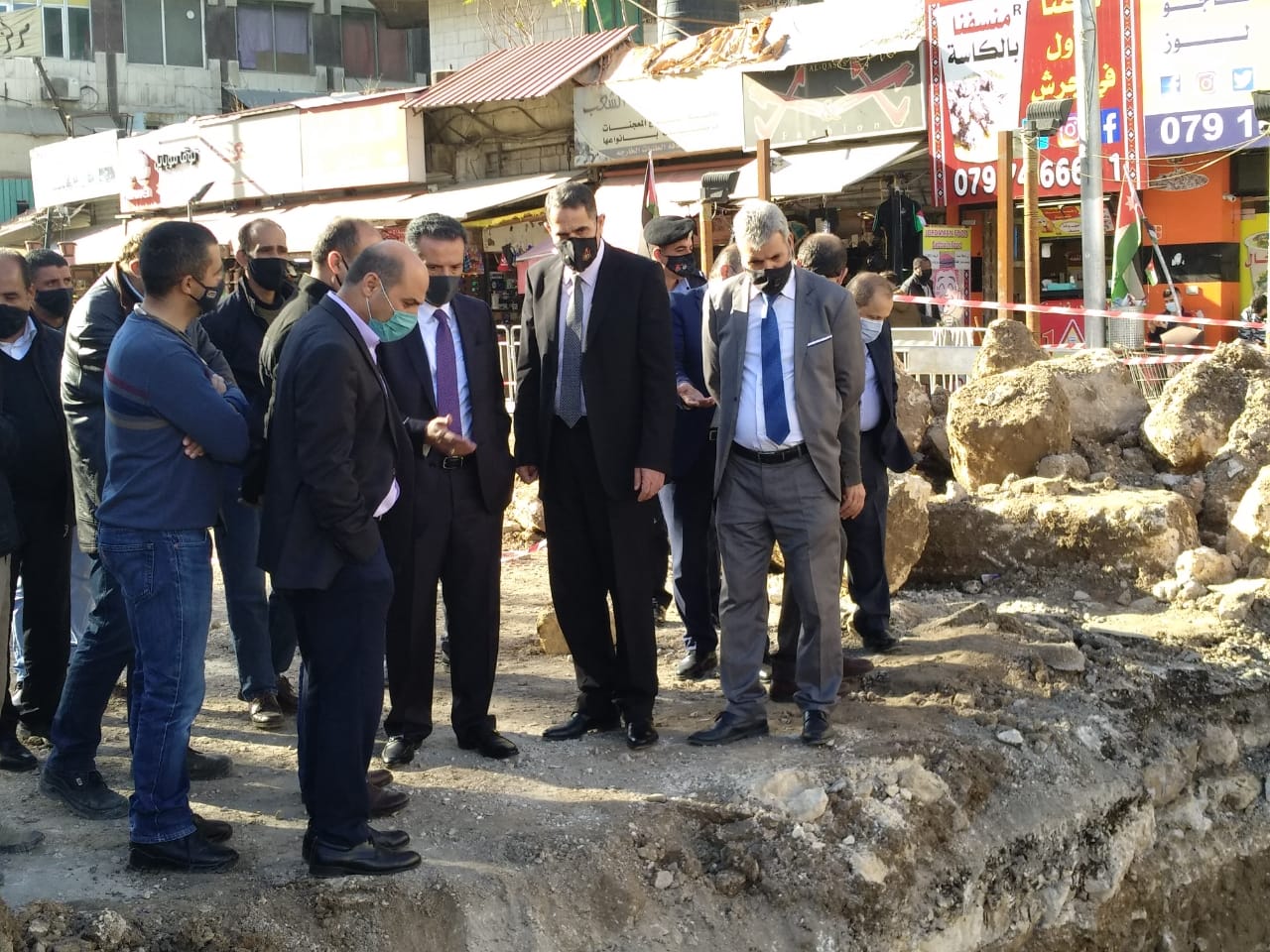وزير السياحة يتفقد البقايا الأثرية التي اكتشفت في حفريات وسط البلد