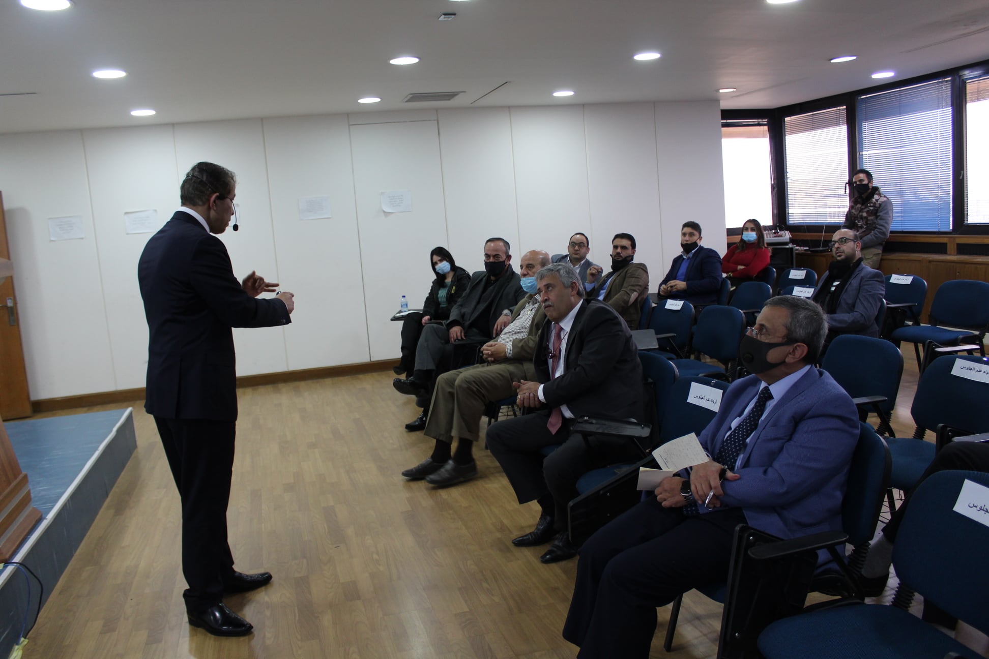 من السادة الحضور خلال استعراض الدراسة:بحضور معالي الدكتور نضال القطامين رئيس لجنة السياحة في مجلس الاعيان وسعادة العين عيسى مراد عضو لجنة السياحة، والسيد عبد الحكيم الهندي رئيس جمعية الفنادق، رئيس جمعية وكلاء السياحة السيد جمال الضامن نائب والسيد شاهر حمدان وممثلين عن وزارة السياحة وهيئة تنشيط السياحة، وممثلين عن الصحافة واعلام