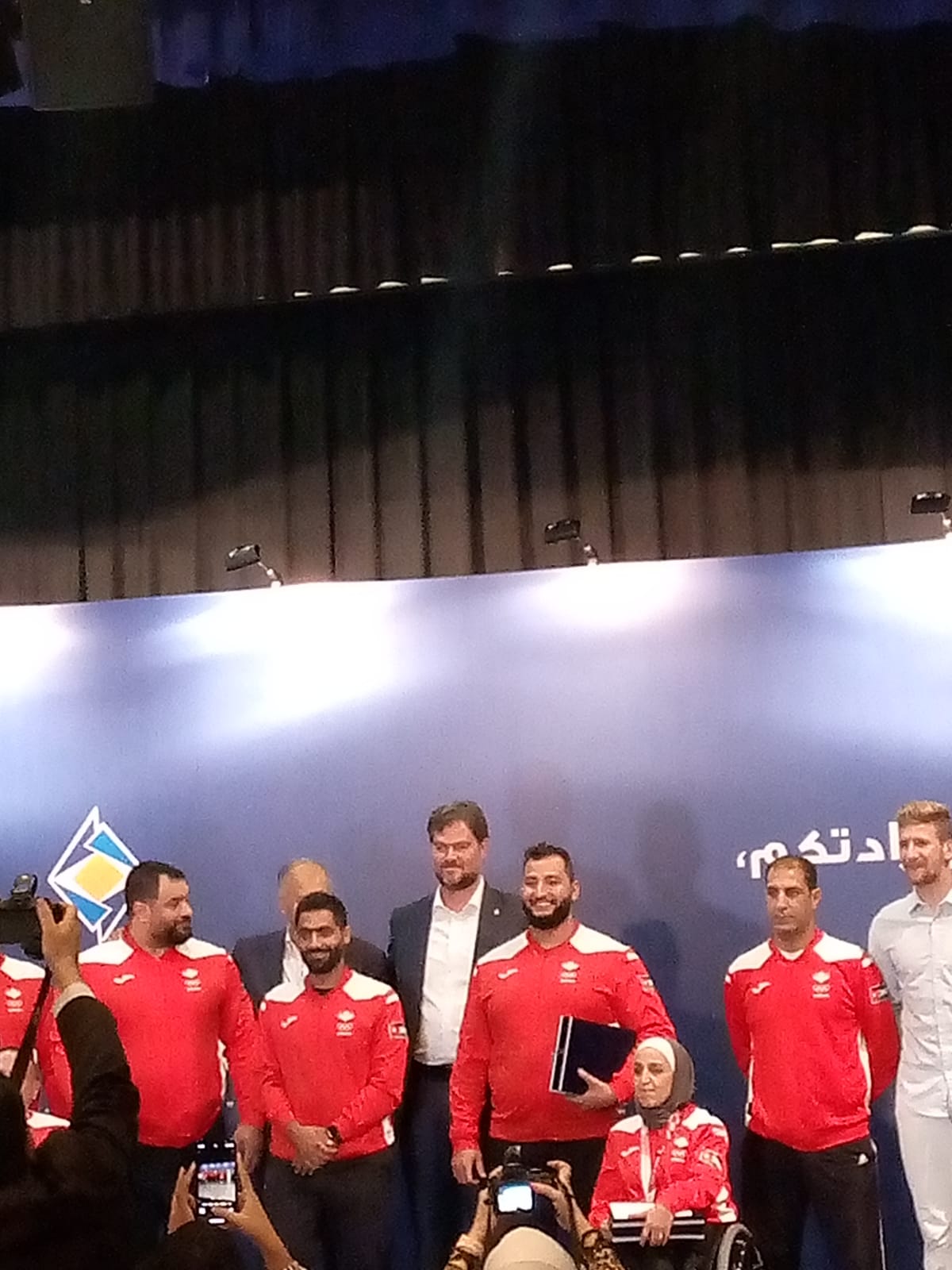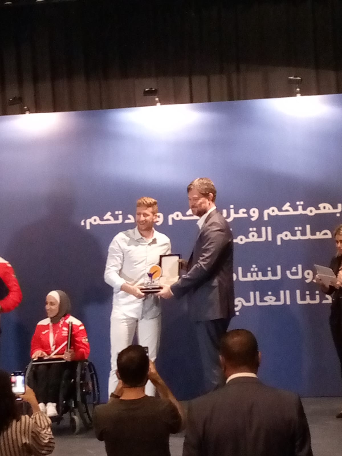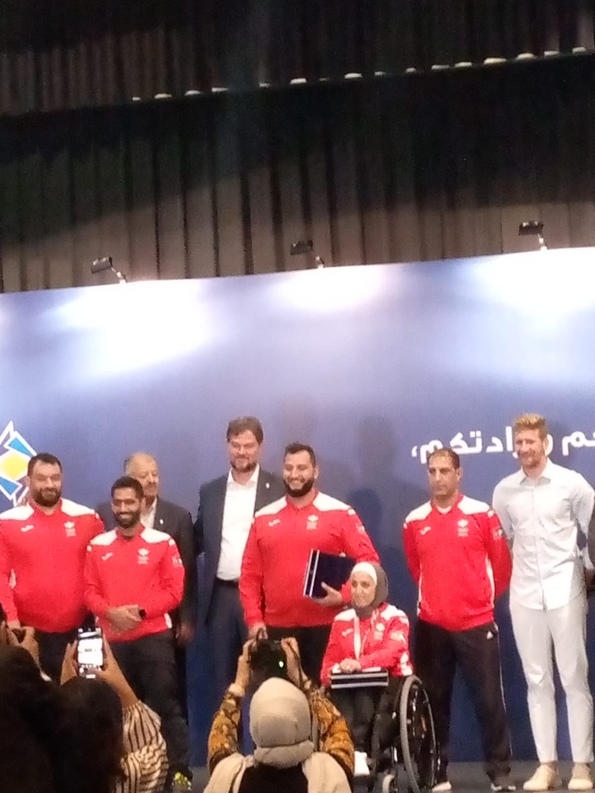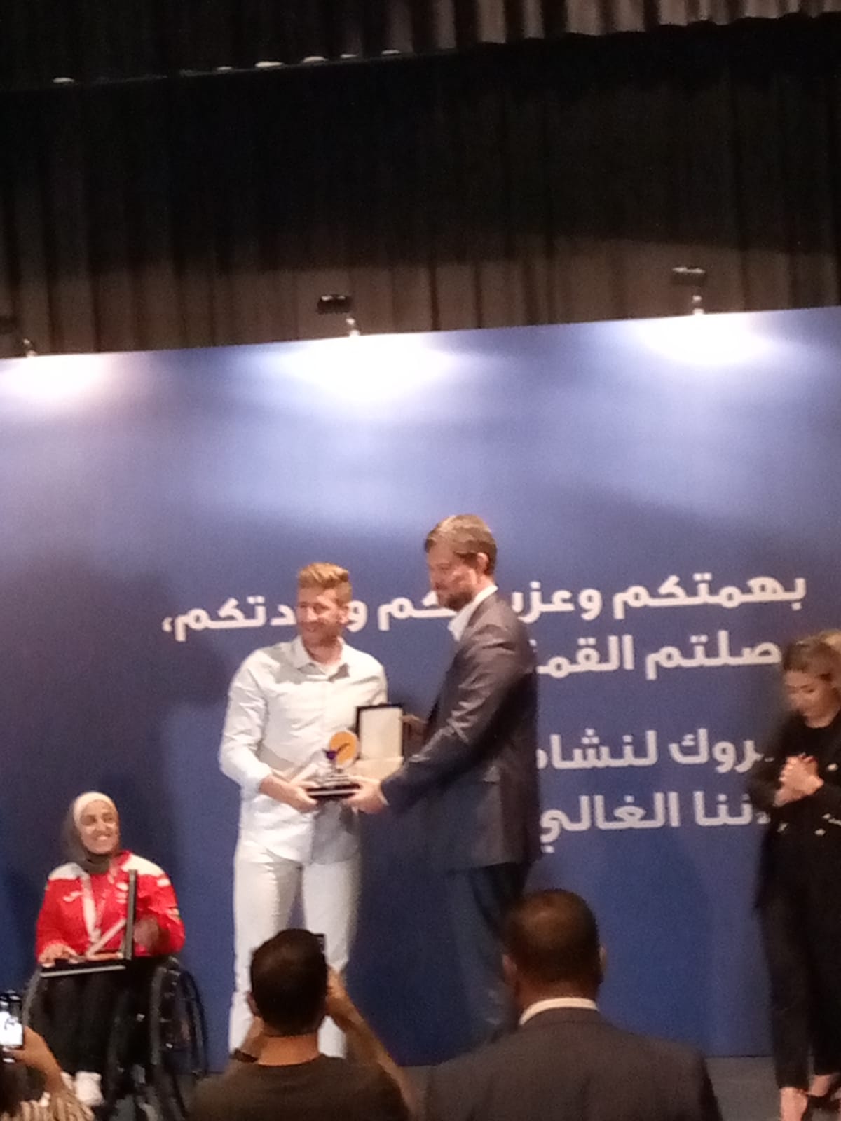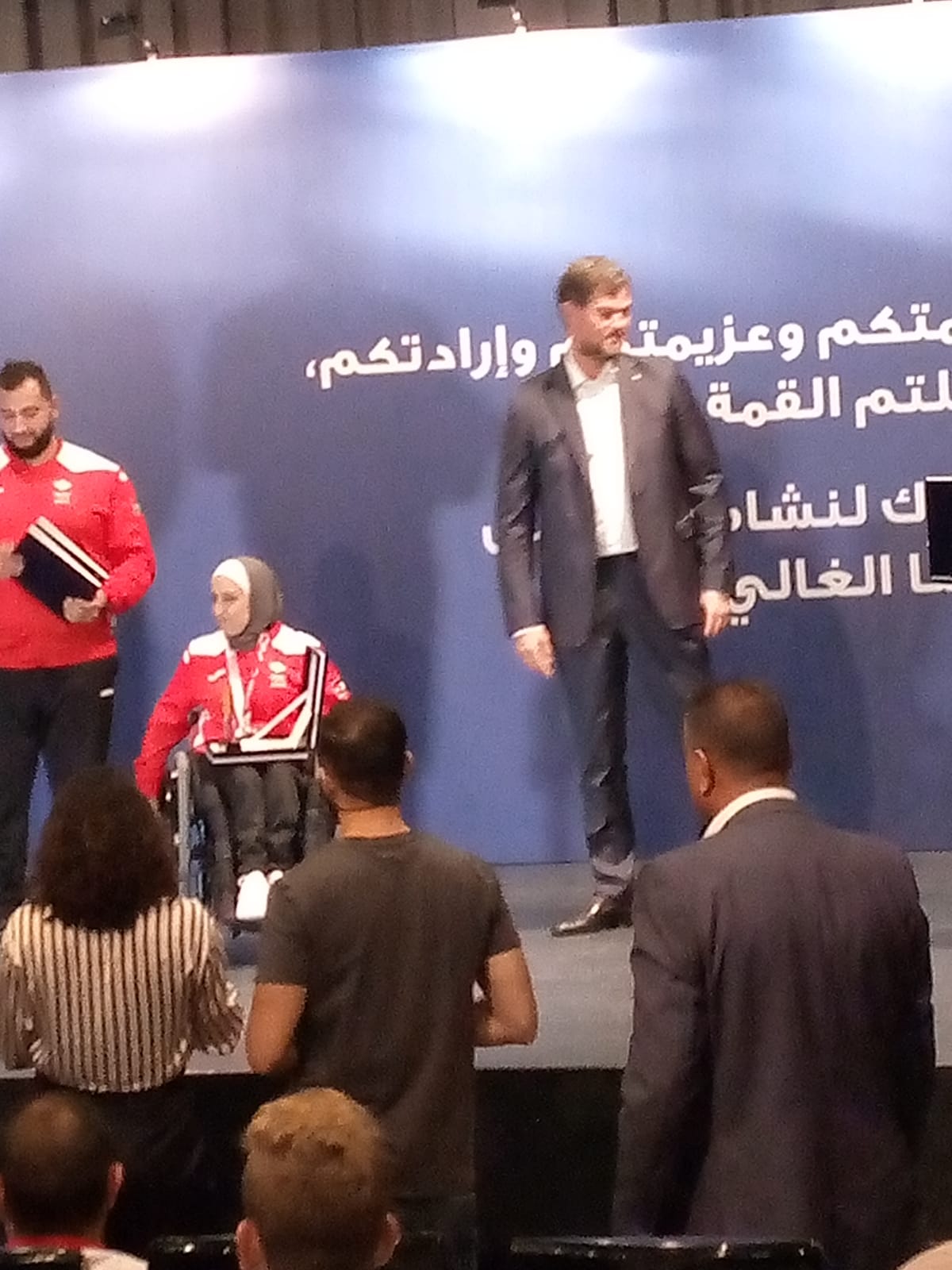 أما اللاعبون الذين جرى تكريمهم من اللجنة البارالمبية هم: عبد الكريم خطاب لرفع الأثقال الحاصل على ميدالية ذهبية ضمن منافسات وزن 88 كغم وجميل الشبلي لرفع الأثقال الحاصل على ميدالية ذهبية ضمن منافسات وزن فوق 107 كغم، وعمر قرادة لاعب المنتخب الوطني لرفع الأثقال والحاصل على الميدالية الذهبية ضمن منافسات وزن 49 كغم، وأحمد هندي لاعب المنتخب الوطني لرمي الجلة الحاصل على الميدالية ذهبية، وختام أبو عوض فردي كرة الطاولة الحاصلة على الميدالية البرونزية.