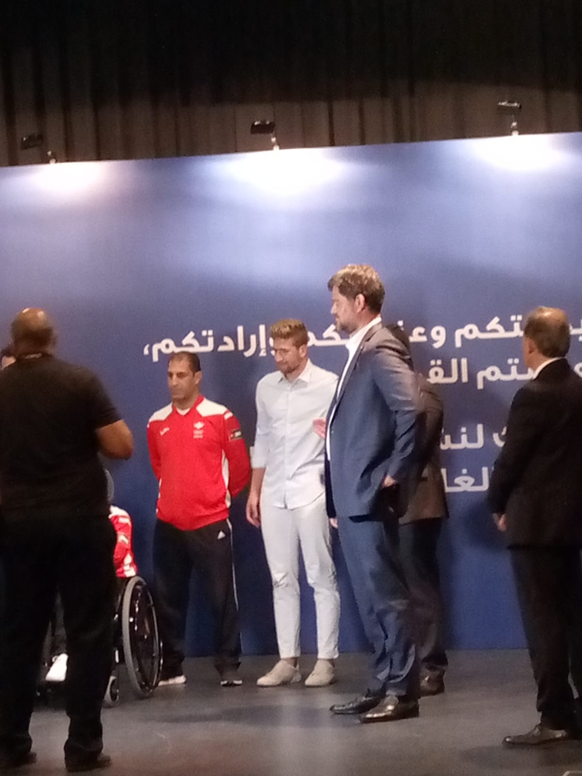 كما ألقى كل من عطوفة السيد ناصر المجالي الأمين عام للجنة الأولمبية والدكتور حسين أبو الرز رئيس اللجنة البارالمبية كلمة ترحيبية، هنأوا فيها أبطال الأردن الذين حققوا هذه الإنجازات، كما ثمّنا هذه اللفته الكريمة من إدارة البنك الأردني الكويتي والتي جاءت لدعم هؤلاء الأبطال والمساهمة في تطوير مهاراتهم ليواصلوا التقدم وتحقيق طموحاتهم وانجازاتهم محلياَ ودولياَ.