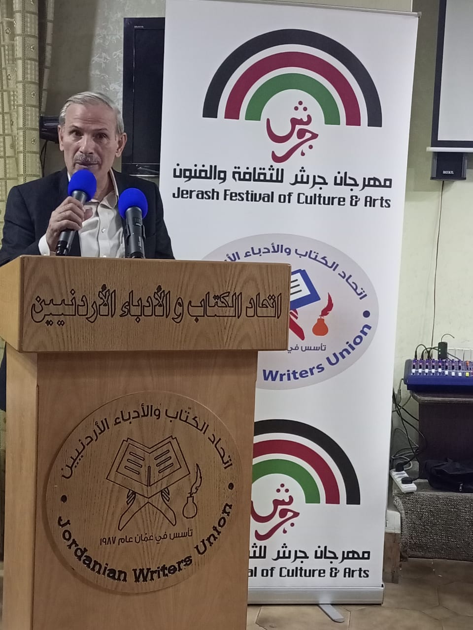 ضمن فعاليات مهرجان جرش للثقافة والفنون الخامس والثلاثين، أقيمت الامسية الشعرية الثانية بمقر الاتحاد في قاعة روكس العزيزي لنخبة من الشعراء; جمال عشا، د. صائب القاضي، الاستاذ الدكتور هاشم مناع، د. فتحي عبدالله، مهند دبابنة، و التي تميزت بالحضور النوعي من متذوقي الشعر العربي الأصيل أدار الأمسية الزميل محمود الداوود وقدم سيرة الشعراء الذاتية.