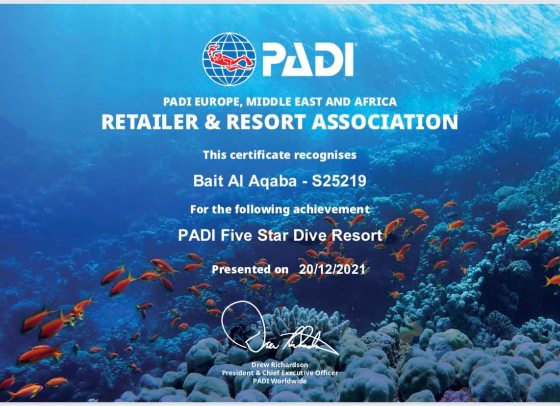بيت العقبة – Bait alaqaba resort يرتقي لتصنيف 5 نجوم حسب تصنيف منظمة بادي العالمية PADI