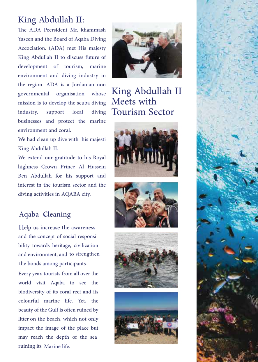 وبهذه المناسبة يتقدم (رئيس تحرير جريدة وموقع عالم السياحة) بالتهنئة لجمعية العقبة للغوص ممثلة برئيس مجلس ادارتها الكابتن خماش طه ياسين وزملائه اعضاء مجلس ادارة الجمعية وكل العاملين والداعمين لاخراج لمجلة جمعية العقبة للغوص