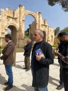 وابتدأت الجولة التي رافقه بها أمين عام الوزارة الدكتور عماد حجازين، و مدير عام دائرة الآثار العامة الدكتور فادي بلعاوي ومساعد الامين العام للشؤون السياحية المهندس ايمن ابو خروب، ومدير سياحة جرش فراس الخطاطبة ومدير آثار جرش محمد الشلبي، من نقطة انطلاق الزائر في سوق جرش الحرفي وصولاً للموقع الاثري.