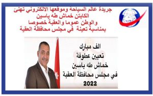 الأخبار جريدة عالم السياحة وموقعها الالكتروني تهنئ الكابتن خماش طه ياسين بمناسبة تعيينه عضوا في مجلس محافظة العقبة2022 اخر تحديث أبريل 24, 2022 993 مشاركة تهنئة ومباركة تتقدم جريدة عالم السياحة وموقعها الالكتروني بالتهنئة والمباركة ممثلة برئيس تحريرها والعاملين فيها من سعادة الكابتن خماش طه ياسين بمناسبة تعيينه عضوا في مجلس محافظة العقبة ونيله الثقة متمنيين له ولزملاءه التوفيق ،، 993 مشاركة