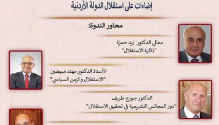 تحت رعاية أمين عام وزارة الثقافة عطوفة الأستاذ هزاع البراري، وبمناسبة احتفالات المملكة بعيد الاستقلال، ينظم مركز التوثيق الملكي الأردني الهاشمي وبالتعاون مع دائرة المكتبات في أمانة عمان الكبرى ندوة بعنوان: إضاءات على استقلال الدولة الأردنية، وذلك اليوم الأربعاء الموافق الأول من حزيران 2022م، الساعة الحادية عشر صباحًا في أمانة عمان الكبرى مركز الحسين الثقافي، حيث تحدث راعي الندوة عطوفة الأستاذ هزاع البراري مرحبا بالحضور مشيرا بكلمته الترحيبية دور الثقافة واهميتها في تعزيز الاستقلال واثراء مسيرة اي امة داعيا للبدء في الاستماع للمنتدين بحضور شخصيات ادبية ومجتمعية وسياسية وقد تحدث _ معالي الدكتور زيد حمزة: عن ورقة بعنوان “ذاكرة الاستقلال” استعرض فيها الاحوال الصحية وتطورها منذ الامارة وحتى الوقت الحاضر وتلاه_ الدكتور جورج طريف: “دور المجالس التشريعية في تحقيق الاستقلال” مستعرضا احوال ودور المجالس التشريعية في بناء تاريخ والتأسيس لتشريعات اردنية