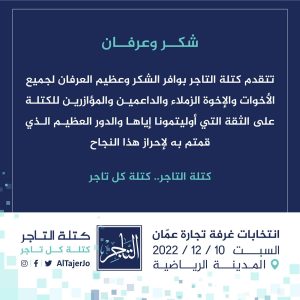 فوز كاسح لكتلة التاجر بانتخابات غرفة تجارة عمان2022