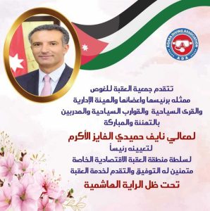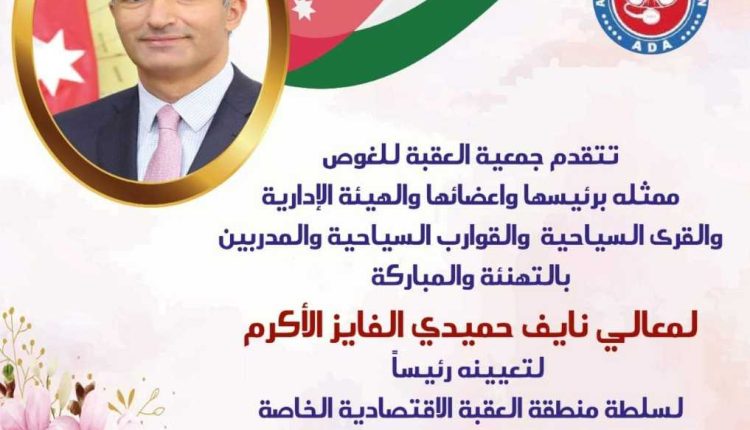 اعلانات في الاخبار-Ads in the newsالغوص-نشاطات بحرية جمعية العقبة للغوص تقدم التهاني لمعالي نايف الفايز بمناسبة توليه رئاسة سلطة منطقة العقبة الااقتصادية اخر تحديث ديسمبر 27, 2022 816 مشاركة عالم السياحة:تهاني 816 مشاركة
