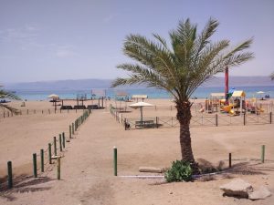 يقع بعد 800 متر فقط سيرا على الاقدام او بستخدام السيارة , هو الشاطىء العام الوحيد في الشاطىء الجنوبي ويسمى متنزه العقبة البحري , ويمتد مسافة 7 كيلو متر ويحتوي على أشهر 11 موقع للغوص , ويوجد فيها العديد من الانشطة بما فيها حديقة العاب للأطفال ومنطقة تخييم متخصصة ويوجد فيها الخدمات العامة من التواليت ومرافق الاستحمام مقابل نصف دينار على أستخدام الخدمة , ويوجد بعض الاكشاك الصغيرة التي تبيع بعض المنتجات على الشاطىء بأضافة الى وجود مطعم مميز للأطعمة المحلية . الشاطىء كبير ومن الممكن أن يكون مزدحم جدا وقت العطلات ونهاية الاسبوع وأذا كنت تبحث على الخصوصية في تلك الفترات يمكن التوجه للشواطىء الخاصة