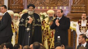 ووجه البابا تواضروس الثاني، الشكر إلى الرئيس عبد الفتاح السيسي، قائلا: “شكرا خالصا ومن القلب إلى فخامة السيد الرئيس عبد الفتاح السيسي، رئيس الجمهورية ومؤسس الجمهورية الجديدة، والذى يؤكد بحضوره المبهج على تقديم التهنئة بالعيد والعام الجديد وطمأنة جموع المصريين فى أى أزمات تأتي على الوطن ولكن عندما يكون القائد مطمئنا نطمئن فيه“.