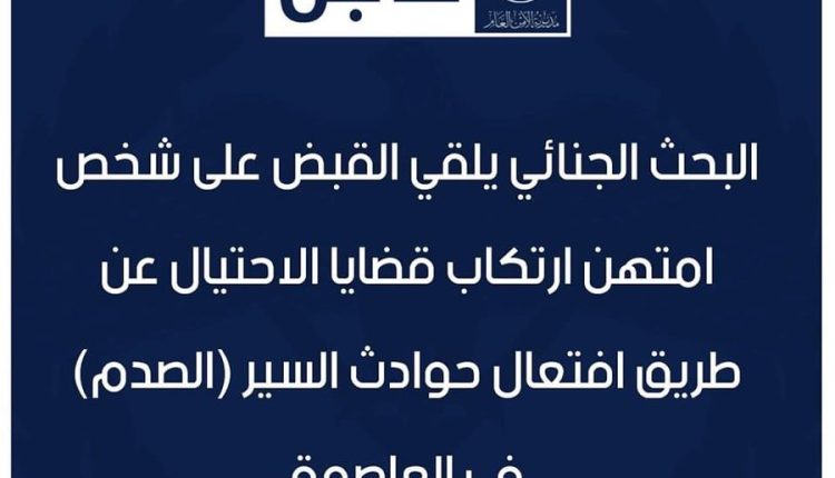 البحث الجنائي يُلقي القبض على شخص امتهن ارتكاب قضايا الاحتيال عن طريق افتعال حوادث السير (الصدم) في العاصمة