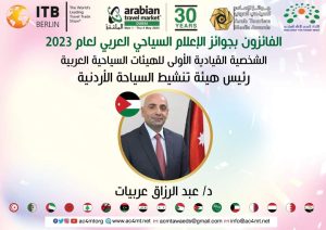 وفاز بجائزة افضل شخصية في الهيئات السياحية العربية مدير عام هيئة تنشيط السياحة الاردنية، الدكتور عبد الرزاق عربيات، كما فازا شذى عساف وعوني الداوود من صحيفة الدستور، بجائزة افضل تحقيق صحفي سياحي “تحقيق تلفريك عجلون”.