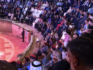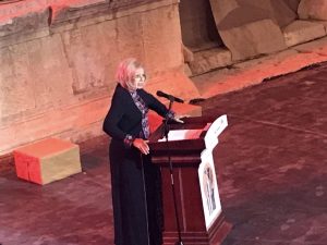 وألقت وزيرة الثقافة رئيسة اللجنة العليا لمهرجان جرش هيفاء النجار كلمة ترحيبية بمندوب راعي الحفل رئيس الوزراء وبالضيوف الكرام ، تاليا نصها :