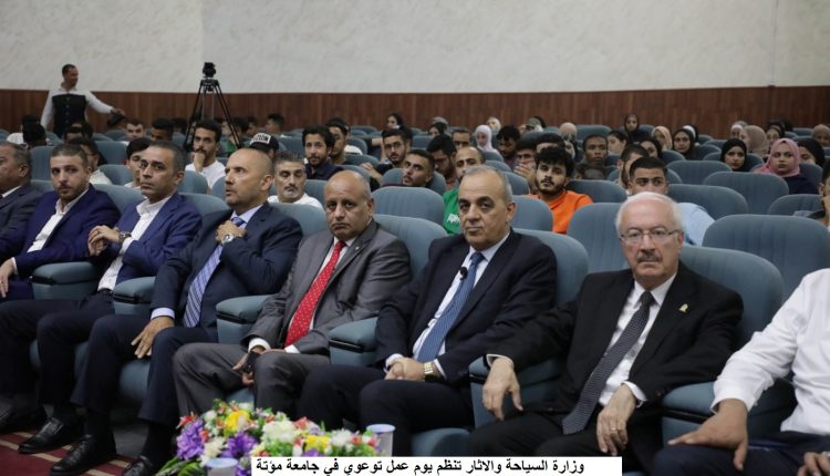 نظمت وزارة السياحة والآثار بالتعاون مع جامعة مؤتة، بالشراكة مع الجمعيات السياحية المتخصصة، اليوم الثلاثاء، وبحضور نائب رئيس جامعة مؤتة الدكتور مروان الموسى، يوم عمل توعوي لتعريف الطلبة بفرص العمل المتاحة بالقطاع السياحي.