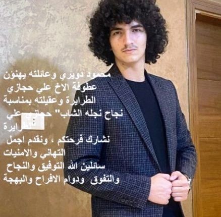 د.محمود دويري وعائلته يهنؤن عطوفةالاخ ” علي حجازي الطرايرة “وعقيلته بمناسبة نجاح نجله الشاب حجازي الطرايرة