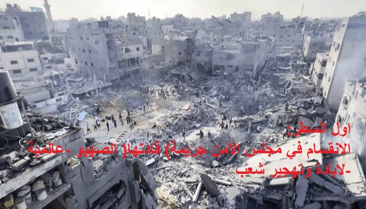 اول السطر:الانقسام في مجلس الأمن جريمة قادتها الصهيو -عالمية -لابادة وتهجير شعب