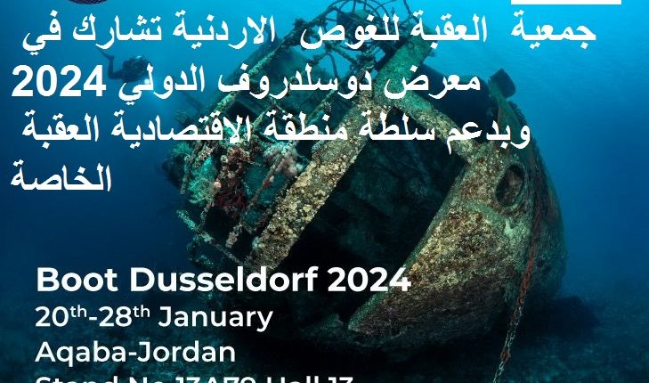 اعلنت جمعية العقبة للغوص الاردنية والتي يرئسها( الكابتن خماش ياسين) عضو مجلس ادارة تجارة العقبة عن مشاركة الجمعية واعضائها وغواصيها في معرض دوسلدورف الدولي boot Düsseldorf 2024 في الفترة يناير من 20 إلى 28. معرض دوسلدورف الدولي وبدعم من سلطة منطقة العقبة الخاصة وبمشاركة المؤسسات المعنية بالنشاطات في مدينة العقبة، ويجدر بالذكر ان المعرض عالمي يضم كافة الاجنحة المهتمة برياضة الغوص والنشاطات البحرية ومستلزماتها وادواتها والمعروف بشكل أكثر شيوعا باسم بوت دسلدورف هو واحد من أفضل المعارض المتخصصة في العالم. وتسعى الجمعية وتهدف من مثل هذه المشاركات الاتصال والتواصل مع الشركات وعارضي الانشطة السياحية والبحرية مختلفة الغايات بهدف وضع ا(لعقبة ) كمقصد للسياحة وكواحدة من اجمل مدن العام والتي تزين موانئ البحر الاحمر، اضافة لتشجيع وجذب الاستثمارات وتبادل الخبرات والمعرفة برياضة (ومحبي سياحة الغوص )وان يرى الناس مدينتنا الجميلة العقبة -عروس البحر الأحمر الرائع، ، وهذه المعارض وامثالها فرصة كبيرة لترويج العقبة كمقصد عالمي لسياحة الغوص في العالم والمنطقة