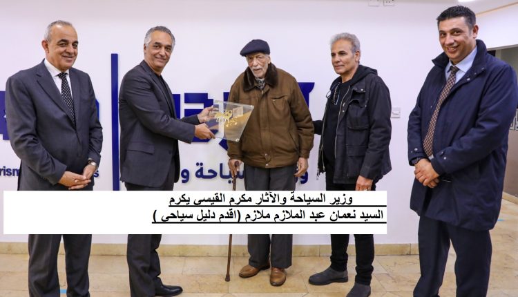 وزير السياحة والآثار مكرم القيسي يكرم نعمان عبد الملازم ملازم (اقدم دليل سياحي )