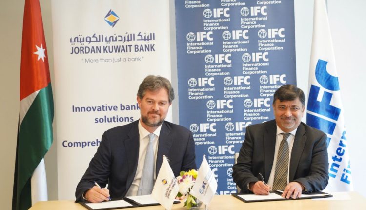 التي وقعها المدير الإقليمي لمؤسسة التمويل الدوليةلمنطقة الشرق الأوسط وباكستان وأفغانستانالسيد خواجة أفتاب أحمد، والرئيس التنفيذي للبنك الأردني الكويتي السيد هيثم البطيخي،بحضور فريق عمل مشترك من كلا الطرفين.