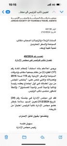 وزعت جمعية وكلاء السياحة والسفر الاردنية اليوم تعميما باختيار سعادة (سلامة خطار)، عضو مجلس الادارة ( نائبا ) للرئيس سعادة (سهيل هلسه) رئيس مجلس الادارة وجاء القرار خلال اجتماع مجلس الادارة اليوم الخميس الموافق 24/2/2024،ويجدر بالذكر ان سعادة سلامة خطار صاحب خبرة في السياحة الوافدة ويعمل بها ومن الناشطين الذين يمتلكون خبرات واسعة في صناعة السياحة ،وتبارك جريدة عالم السياحة وموقعها الالكتروني بهذه الثقة متمنين للمجلس التوفيق والقدرة لتجاوز الصعوبات والتحديات نحو تحقيق مصالح اعضاء الجمعية واهدافها لخدمة صناعة السياحة عموما .