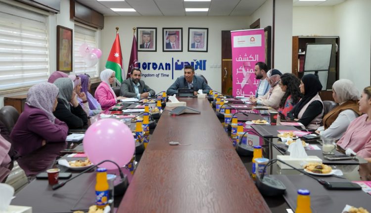 نظمت مديرية الموارد البشرية وتطوير المؤسسي في وزارة السياحة والآثار، في مركز الوزارة، اليوم الخميس، ورشة توعوية وتثقيفية ضمن حملة التشجيع عن الكشف المبكر عن سرطان الثدي “فكر بالوردي”، لموظفات الوزارة في المركز والمحافظات بالتعاون مع مركز الحسين للسرطان .