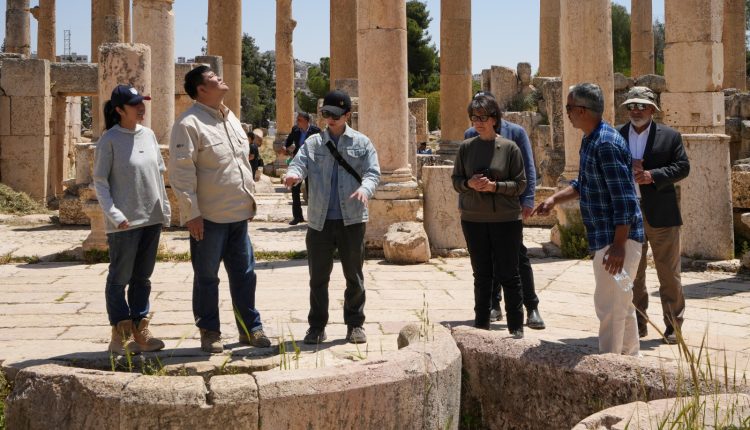 وزيرة السياحة والآثار لينا عناب تشارك الثنائي الصيني الشهير زانغ شينيو (Zhang Xinyu) وليانغ هونغ (Liang Hong) في جولة ميدانية في مدينة جرش الأثرية احتفاءً بيوم التراث العالمي