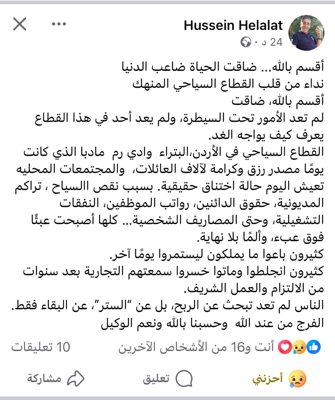 الأخبارصيدنا :من فيسبوك-واتساب-تويتر ضاقت الدنيا وبنداء الاستاذ حسين هلالات من قطاع السياحة المتعثر!!! اخر تحديث أكتوبر 8, 2025 285 مشاركة صيدنا ضاقت الدنيا …………من صفحة الاسناذ حسين هلالات وبدون تعليق 285 مشاركة