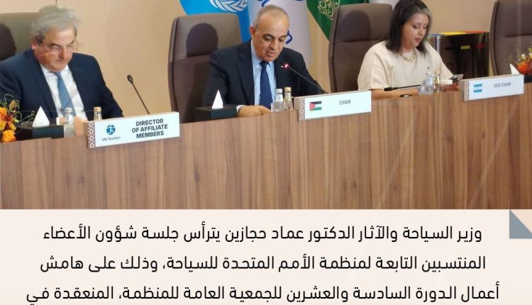 ترأس وزير السياحة والآثار الدكتور عماد حجازين، اجتماع لجنة شؤون الأعضاء المنتسبين التابعة لمنظمة الأمم المتحدة للسياحة، وذلك على هامش أعمال الدورة السادسة والعشرين للجمعية العامة للمنظمة، المنعقدة في العاصمة السعودية الرياض.