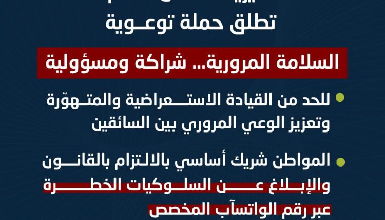 الأمن العام يطلق حملة “السلامة المرورية… شراكة ومسؤولية” للقضاء على القيادة الاستعراضية والمتهورة والتشحيط