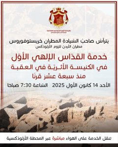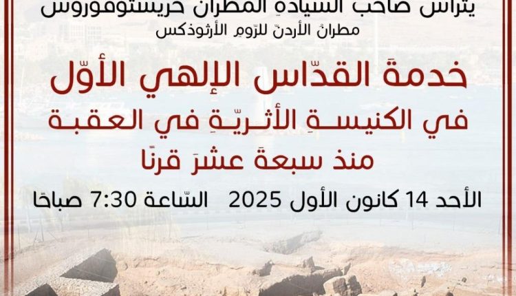 تشهد العقبة غدا الأحد( خدمة القداس )الالهي الاول في مدينه العقبه في الكنيسة الأثرية ويترئس القداس صاحب السيادة مطران الاردن الروم الارثوذكس
