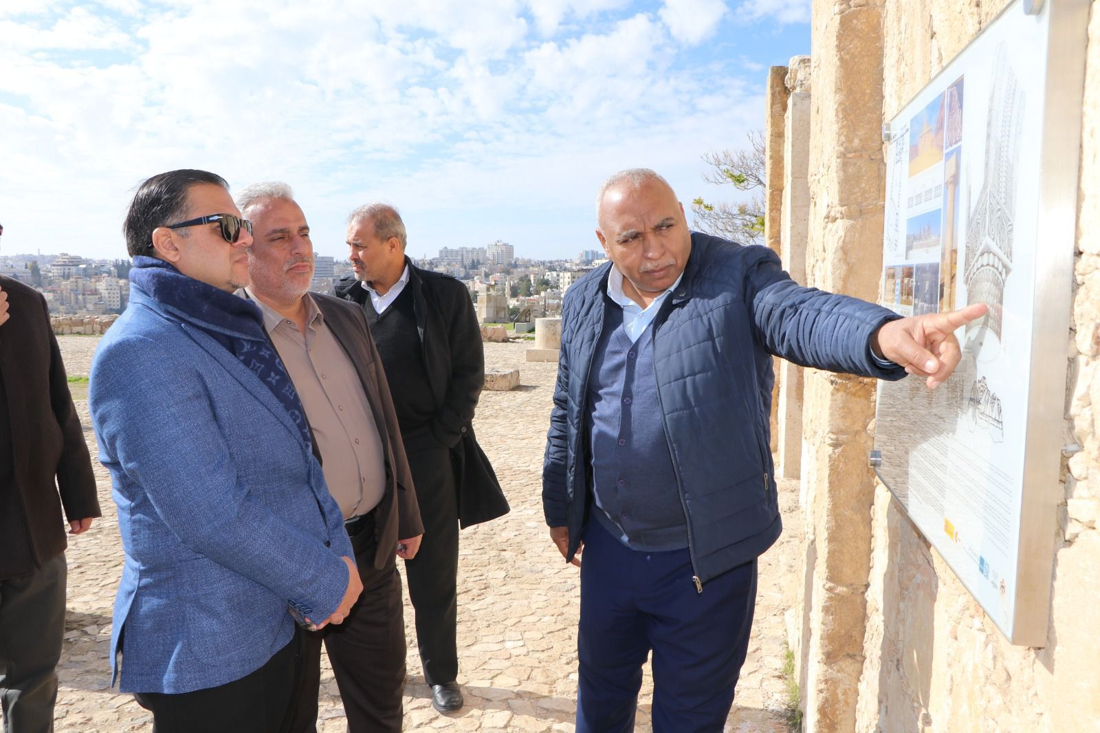 نفذت لجنة تراث مدينة عمان برئاسة أمين عام وزارة السياحة والآثار يزن الخضير، يرافقه مدير عام دائرة الآثار العامة الدكتور فوزي أبو دنه، ونائب مدير المدينة لقطاع الأشغال العامة في أمانة عمان الكبرى المهندس نبيل الجريري، الى جانب عدد من المختصين والمهندسين من كلا القطاعين، زيارة ميدانية شاملة إلى موقع جبل القلعة الأثري، وذلك لمتابعة سير العمل في المشاريع التطويرية المقترحة، وبحث سبل إدراج المواقع الأثرية في المدينة على قائمة التراث العالمي.