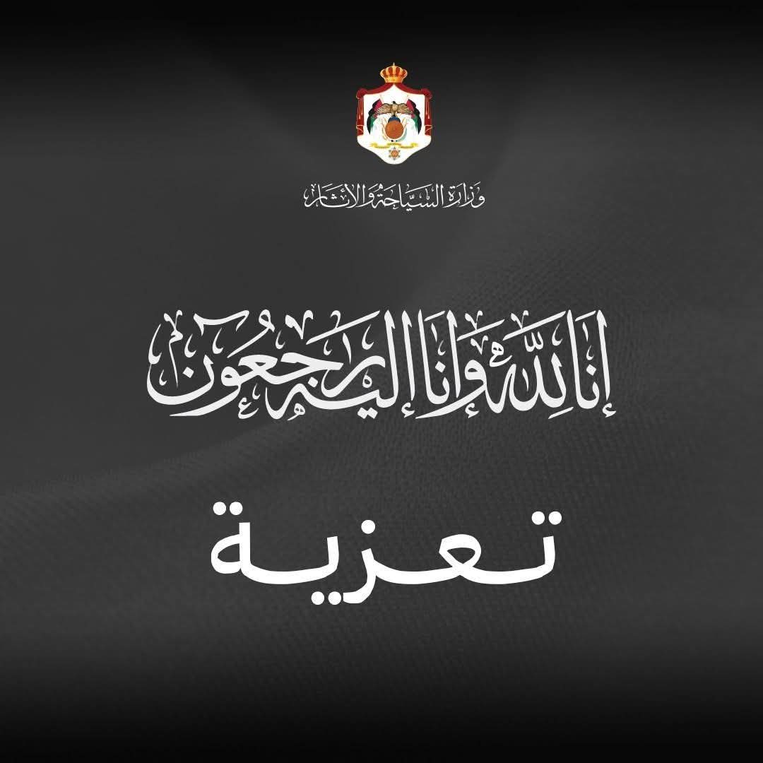 يتقدم معالي وزير السياحة والآثار الدكتور عماد حجازين، وكافة الزملاء في وزارة السياحة والآثار ودائرة الآثار العامة وهيئة تنشيط السياحة، بأصدق مشاعر التعزية والمواساة إلى عطوفة الأمين العام يزن الخضير، بوفاة عمه المغفور له بإذن الله تعالى المهندس سالم صياح مفلح الخضير.