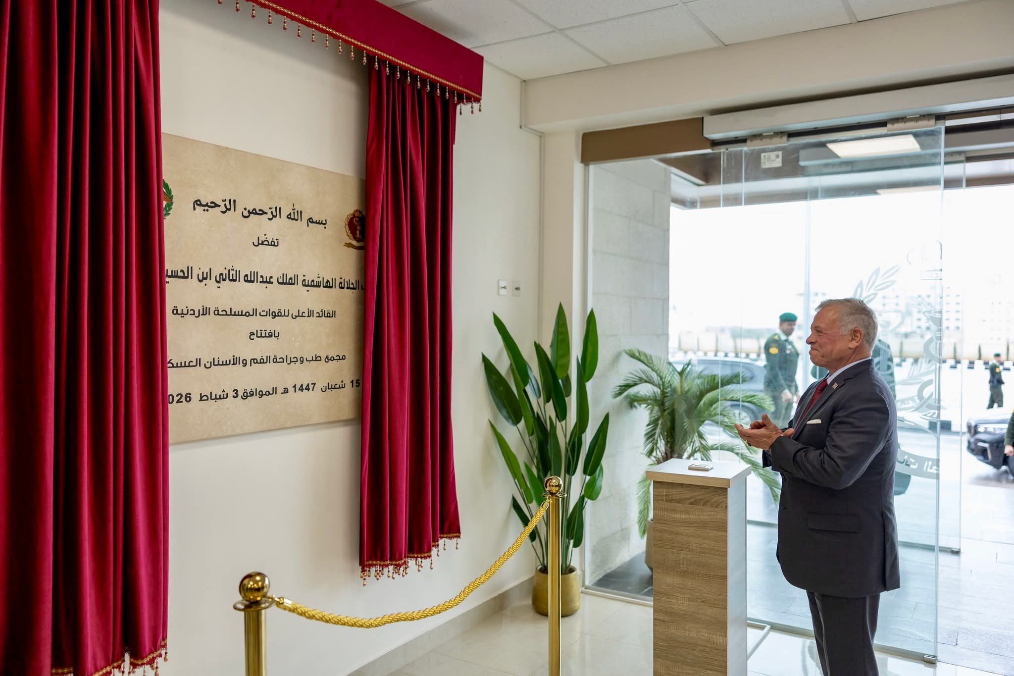 His Majesty King Abdullah II, the Supreme Commander of the Jordan Armed Forces-Arab Army, inaugurates the Military Oral and Maxillofacial Surgery Complex of the Royal Medical Services in Khalda, Amman