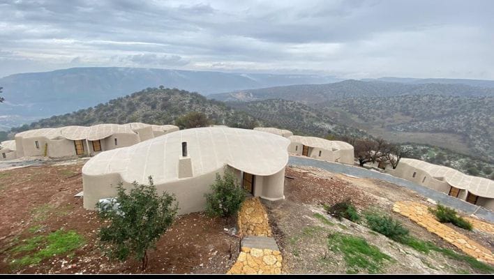 وأشار التقرير إلى أن المشروع، الواقع في أم قيس شمال غرب الأردن، يضم 30 وحدة إقامة صُممت بأسلوب معماري منسجم مع الطبيعة المحيطة، من تصميم المعماري الأردني عمار خماش، بما يحافظ على الهوية البيئية والبصرية للمنطقة ويعزز اندماج البناء مع المشهد الطبيعي.